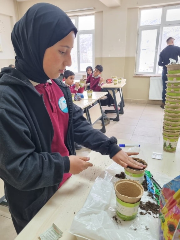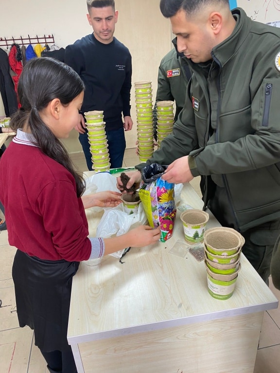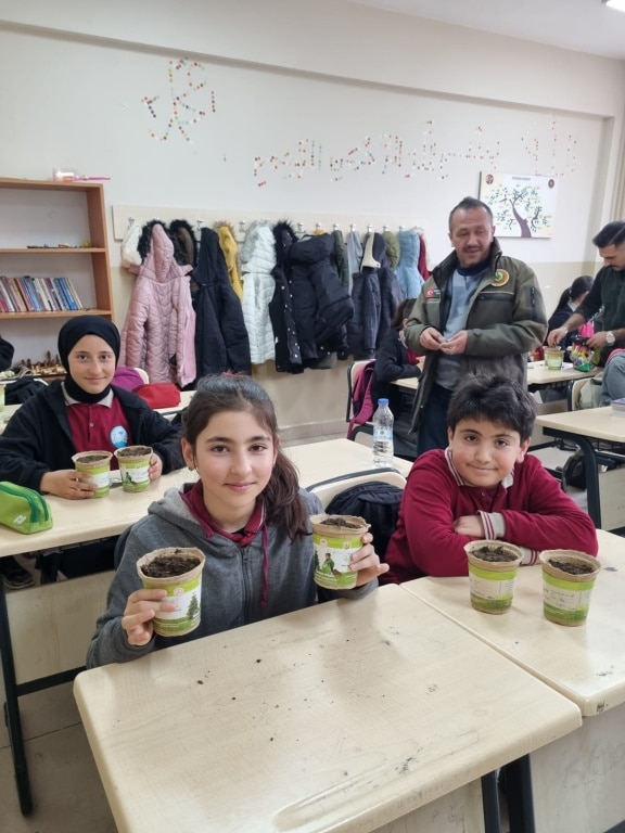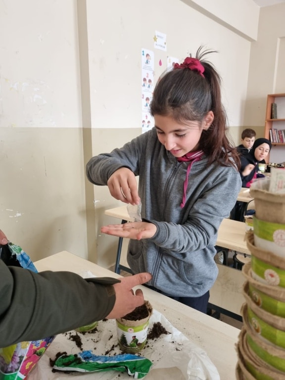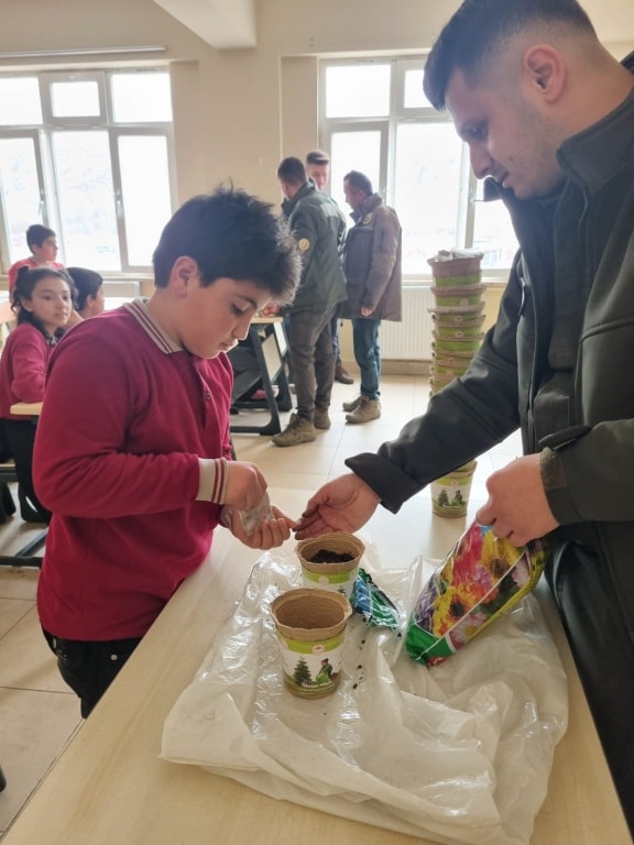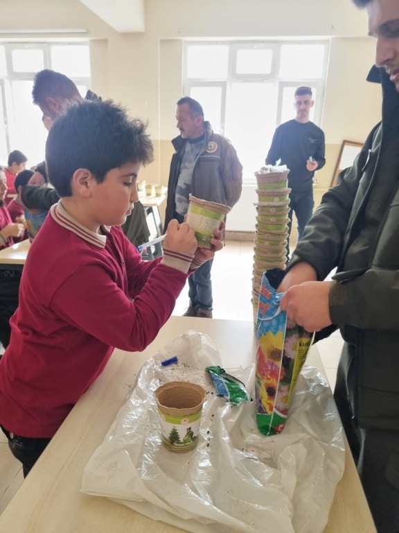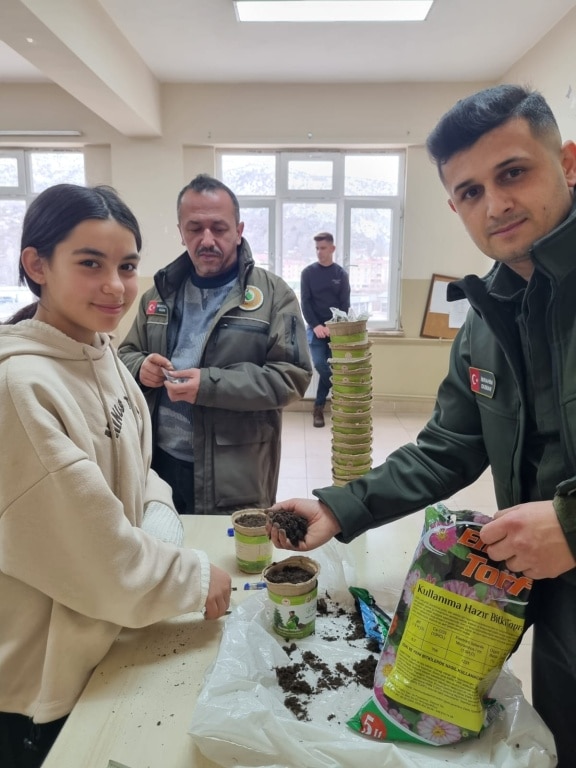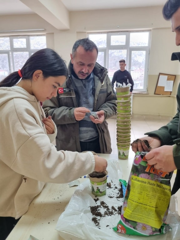 Orman Genel Müdürlüğünden gelen personeller tohum dikme konusunda öğrencilerimize yardımcı olup projeyi başlattılar.