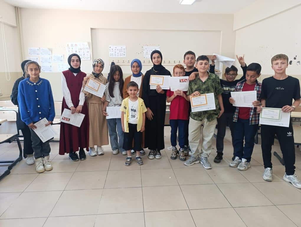 Karne Törenimizde; Akıl ve Zeka Oyunları kursuna katılan öğrencilerimize , e-Twinning Projemizde olan çalışmalarıyla katılım sağlayan öğrencilerimize belgelerini takdim ettik.