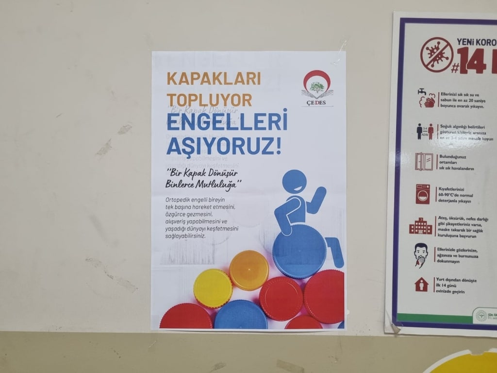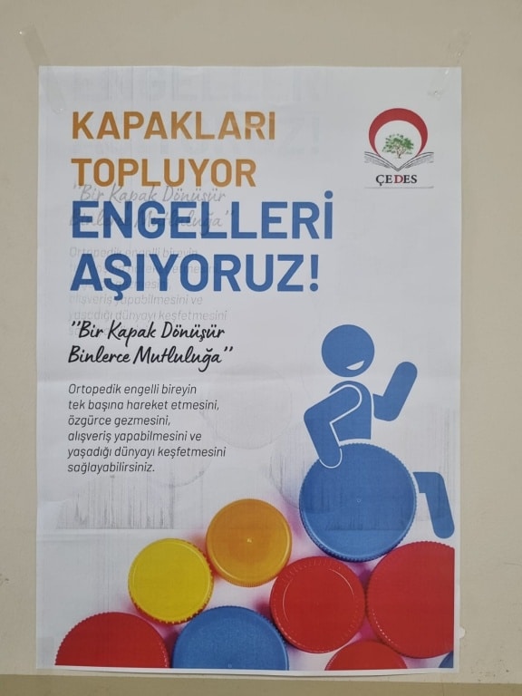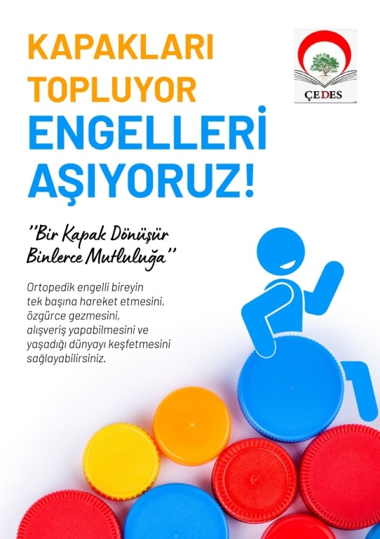 Okulumuzda ÇEDES Projesi kapsamında kapakları topluyor engelleri aşıyoruz. Topladığınız kapakları bekliyoruz.